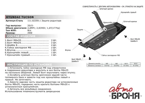 Описание: Hyundai Tucson 3 поколение 2015-2018 полный привод 1.6T (177 л.с.), 2.0, 2.0D, Hyundai Tucson 3 поколение рестайлинг полный привод 2.0, 2.0D, 2.4, с комплектом крепежа