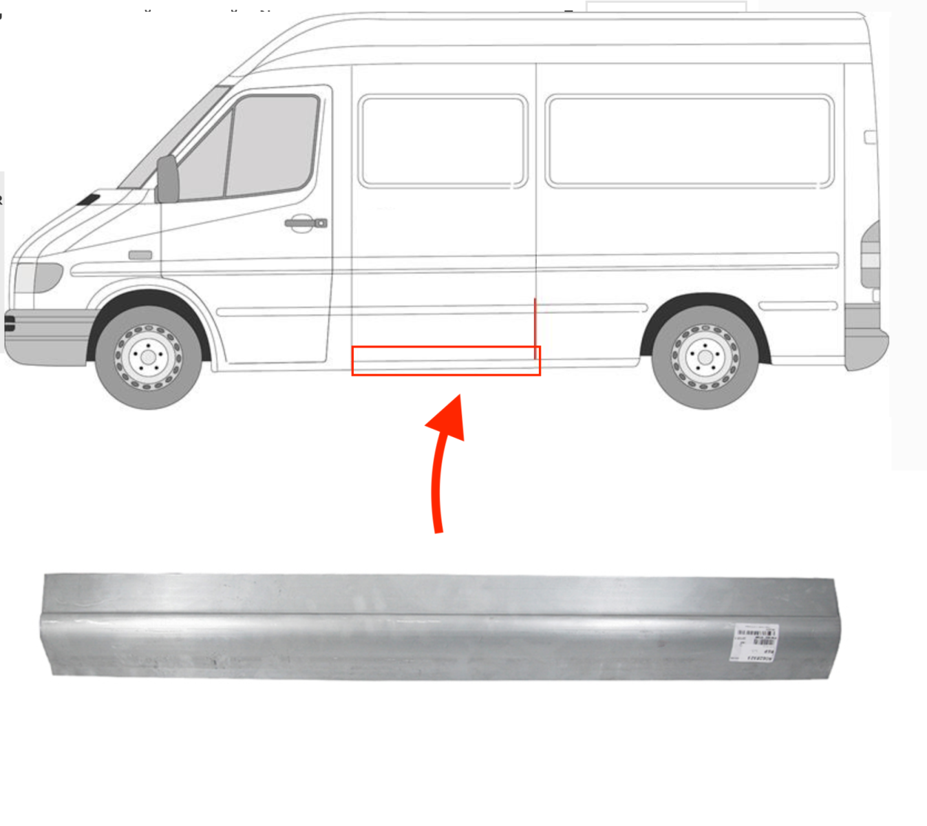Описание: Mercedes Sprinter W901-W905 1995-2006, Volkswagen LT 1996-2006, заводская штамповка под оригинал, за водительской дверью, дл. 1200, выс. 150 мм.