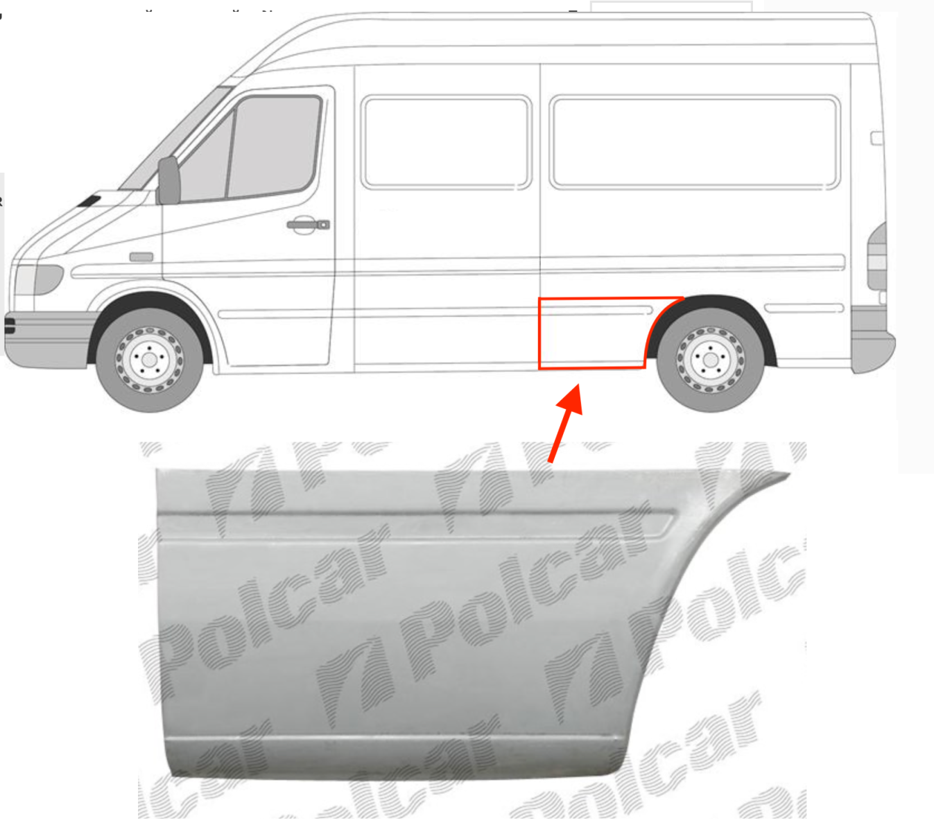 Описание: Mercedes Sprinter W901-W905 1995-2006, Volkswagen LT 1996-2006, заводская штамповка под оригинал, длина 195 см., L2 средняя база