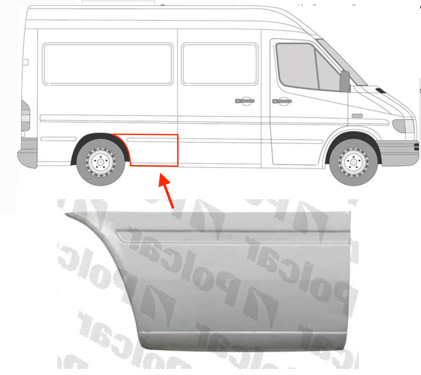 Описание: Mercedes Sprinter W901-W905 1995-2006, Volkswagen LT 1996-2006, заводская штамповка под оригинал, длина 195 см., L2 средняя база
