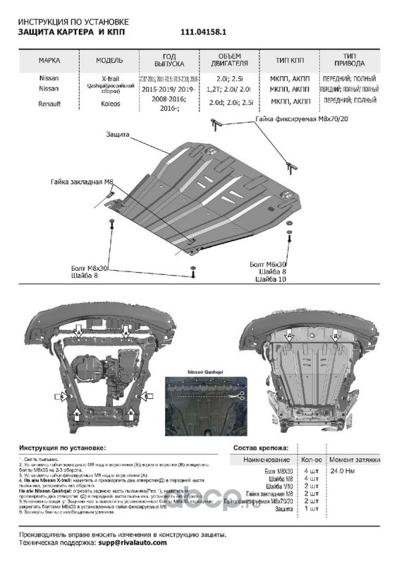 Описание: Nissan X-Trail T31, T32 (2.0, 2.5) 2007-2023, с комплектом крепежа