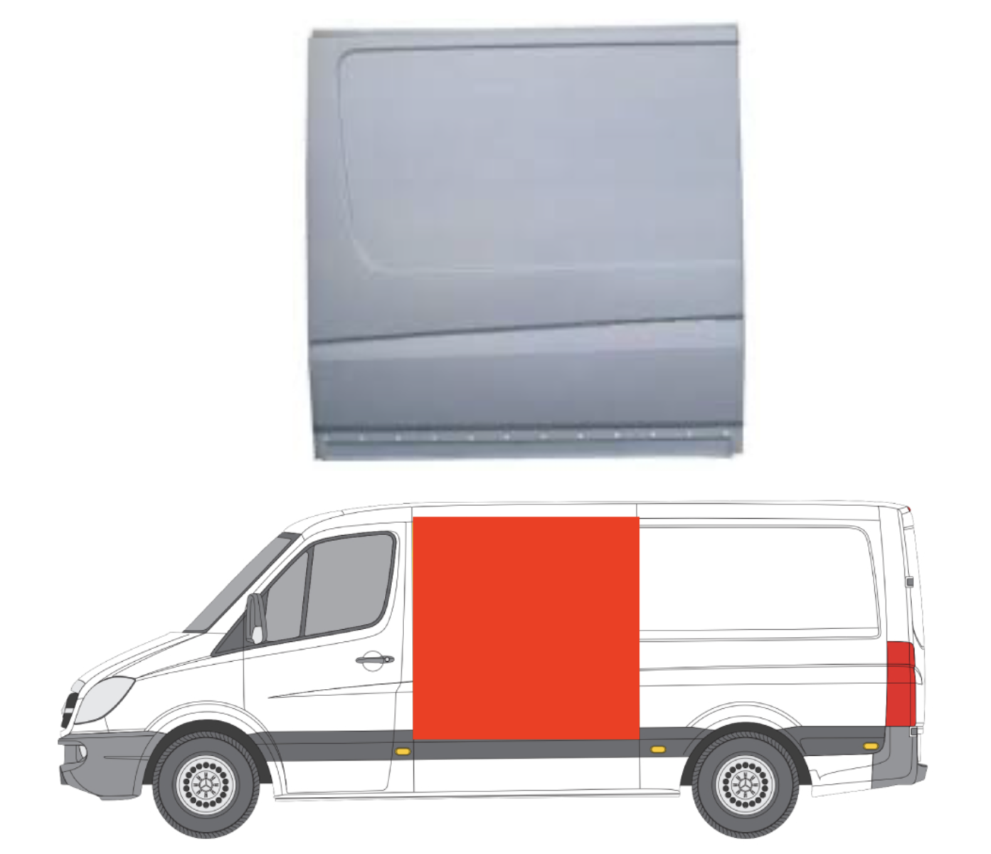 Описание: Mercedes Sprinter W906 2006-2018, Volkswagen Crafter 1 поколение 2006-2016, заводская штамповка под оригинал, c отверстиями для молдинга