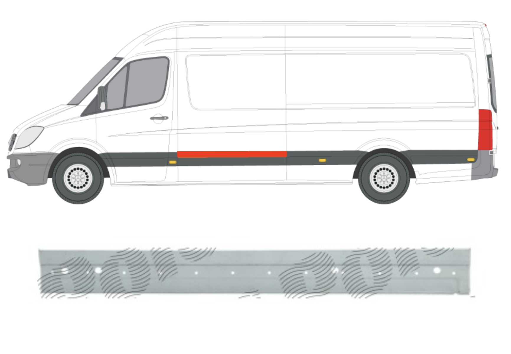 Описание: Mercedes Sprinter W906 2006-2018, Volkswagen Crafter 1 поколение 2006-2016, заводская штамповка под оригинал, с отверстиями для молдинга