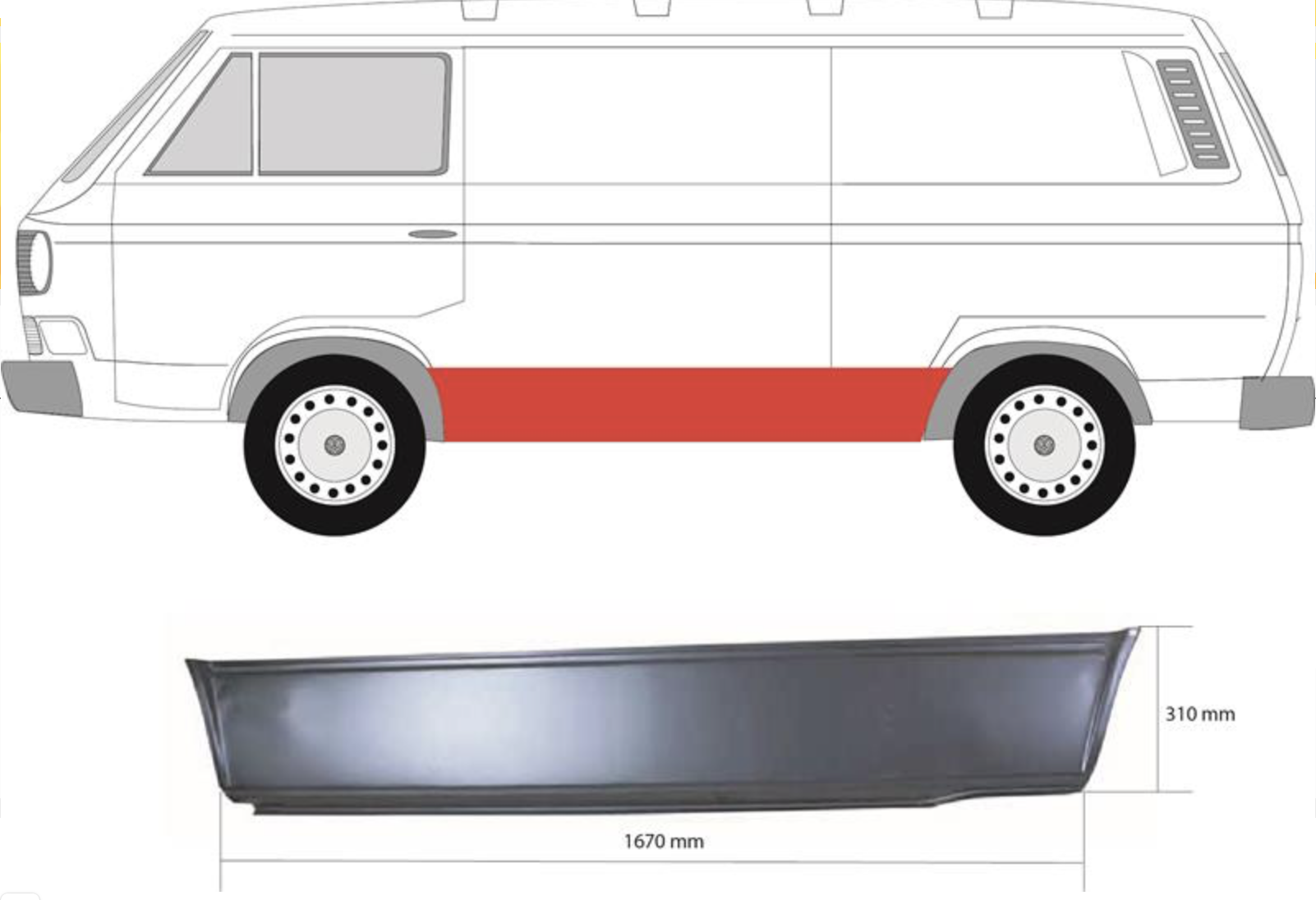 Описание: Transporter T3 1979-1992, заводская штамповка под оригинал, часть от арки до арки