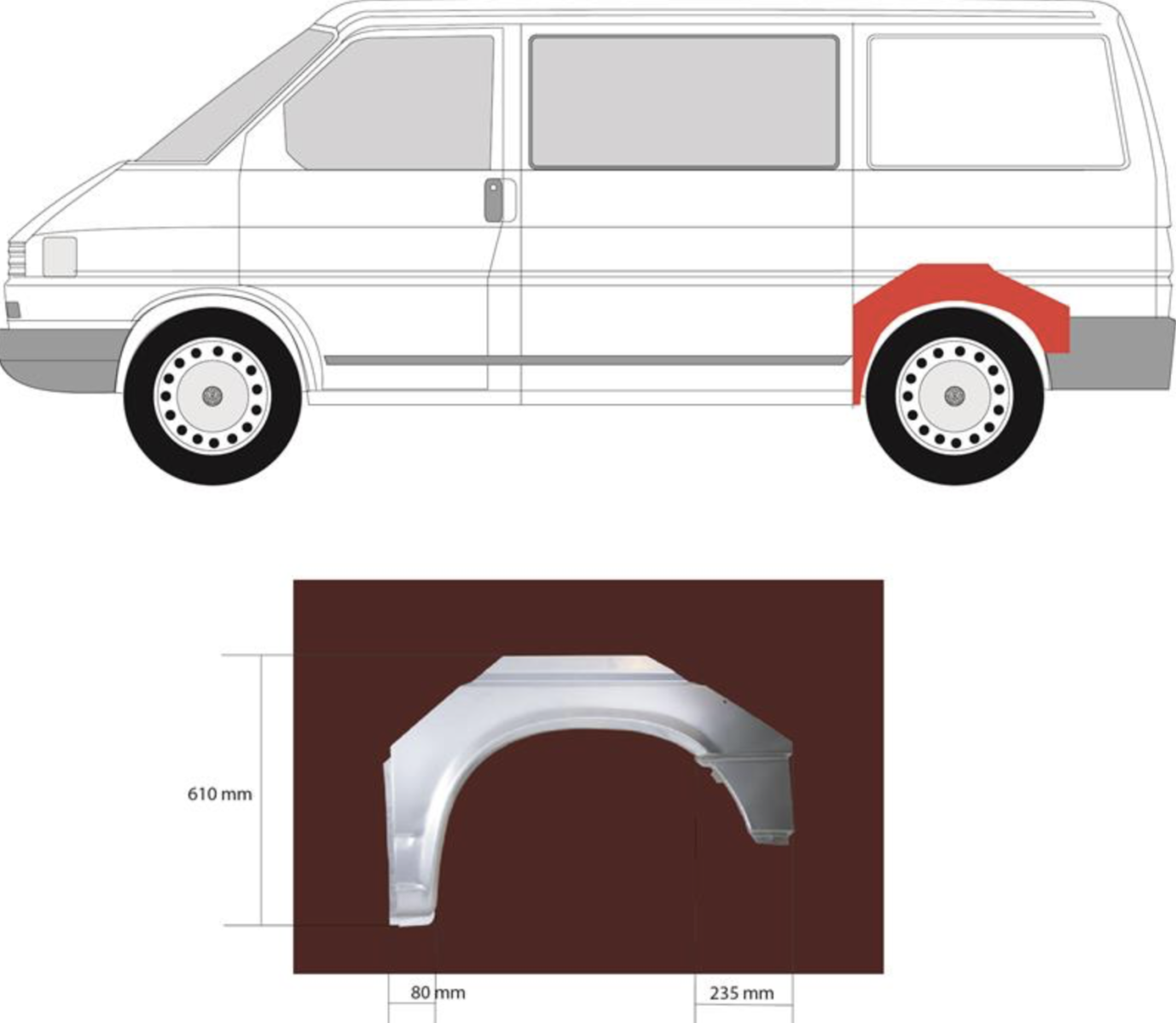 Описание: Transporter T4 1990-2003, заводская штамповка под оригинал, для короткой базы